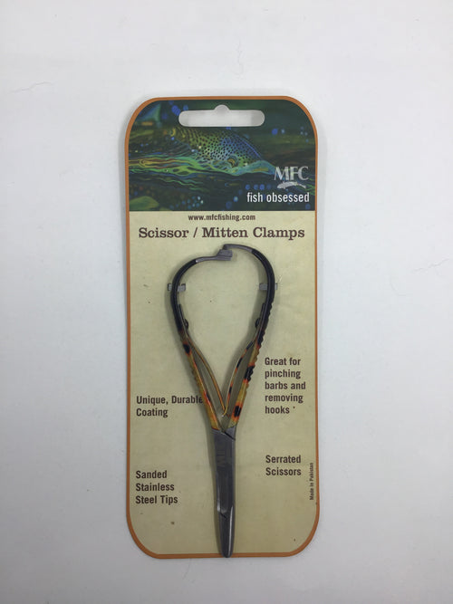 The Mitten Clamp scissor/forceps is a favorite tool amongst anglers of all kind. If you prefer a palm operated tool rather than a "scissor like" finger loop, then the Mitten Clamp is the tool for you. Enjoy your choice of MFC's trout skin or camo patterns