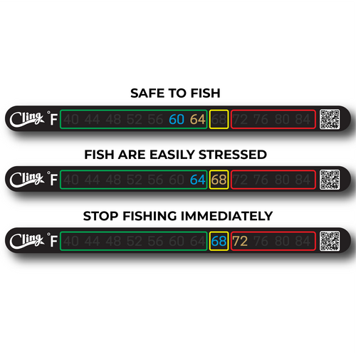 Never guess what the water temperature is with temperature tape. This thermometer securely fastens to your fishing net or any other smooth surface and tells you the exact water temperature within 1-2 degrees. This thermometer also features a "safe zone" outlined in green, a "warning zone" outlined in yellow, and a "danger zone" outlined in red to ensure the user is aware of when the water temps are safe for trout and when they're not! Easy to read and Easy to use this thermometer is sure to keep the trout safe.