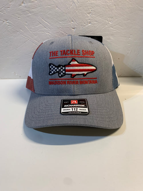 The Tackle Shop Trout Flag Logo With Stars and Stripes Mesh