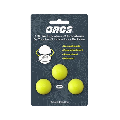 Oros strike indicators enclose fastening hardware inside of two foam hemispheres. When closed, the foam compress creating a pressure fit lock that keeps it on the line and in place, without kinking. Large screw threads make securing it to the line effortless, and it it's even easier to lock in place with wet hands.