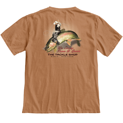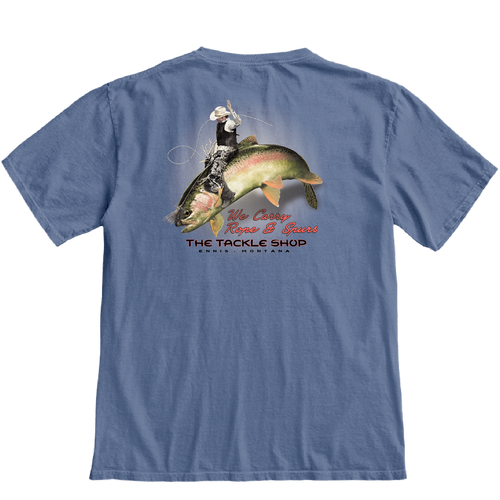 Saddle up with this 100% cotton shirt. The rainbows on the Madison are notorious for getting a little bucky. Strap in and ride for this hopefully more than eight second ride.