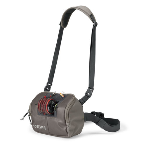 The highly versatile Orvis Chest/Hip Pack is the ultimate grab-and-go fly-fishing pack when you know your target and what they're eating. This 3L pack can be worn on your hip, slung over your shoulder or on your chest. It even snaps right on to the front straps of the Bug-Out Backpack. Myriad applications for brookies in small streams to bonefish on a flat, this big/little pack is efficient and versatile, yet feature rich. Tippet Whippet recessed docking station with tippet bar included for instant, fixed, and fumble-free access for up to six spools. Large main compartment with multiple internal pockets. Top fly patch. Side forceps dock and zinger/nipper pass-through port. Removable shoulder strap and hideaway hip strap. Weight 300g/.66 lbs. In sand. Imported.